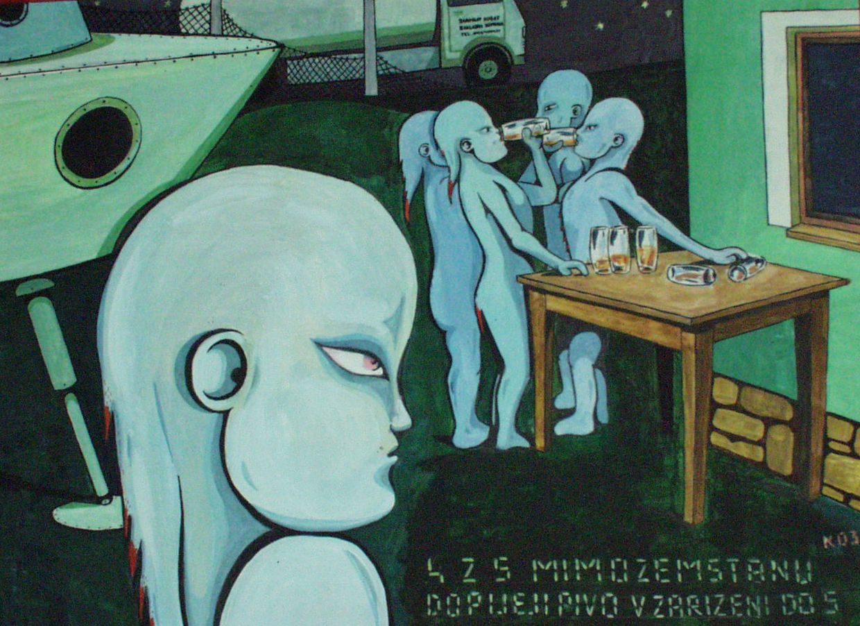 | Zelený špicl se jmenuje obraz tento, co by taky zelený mužík dělal dnes jiného, že? |