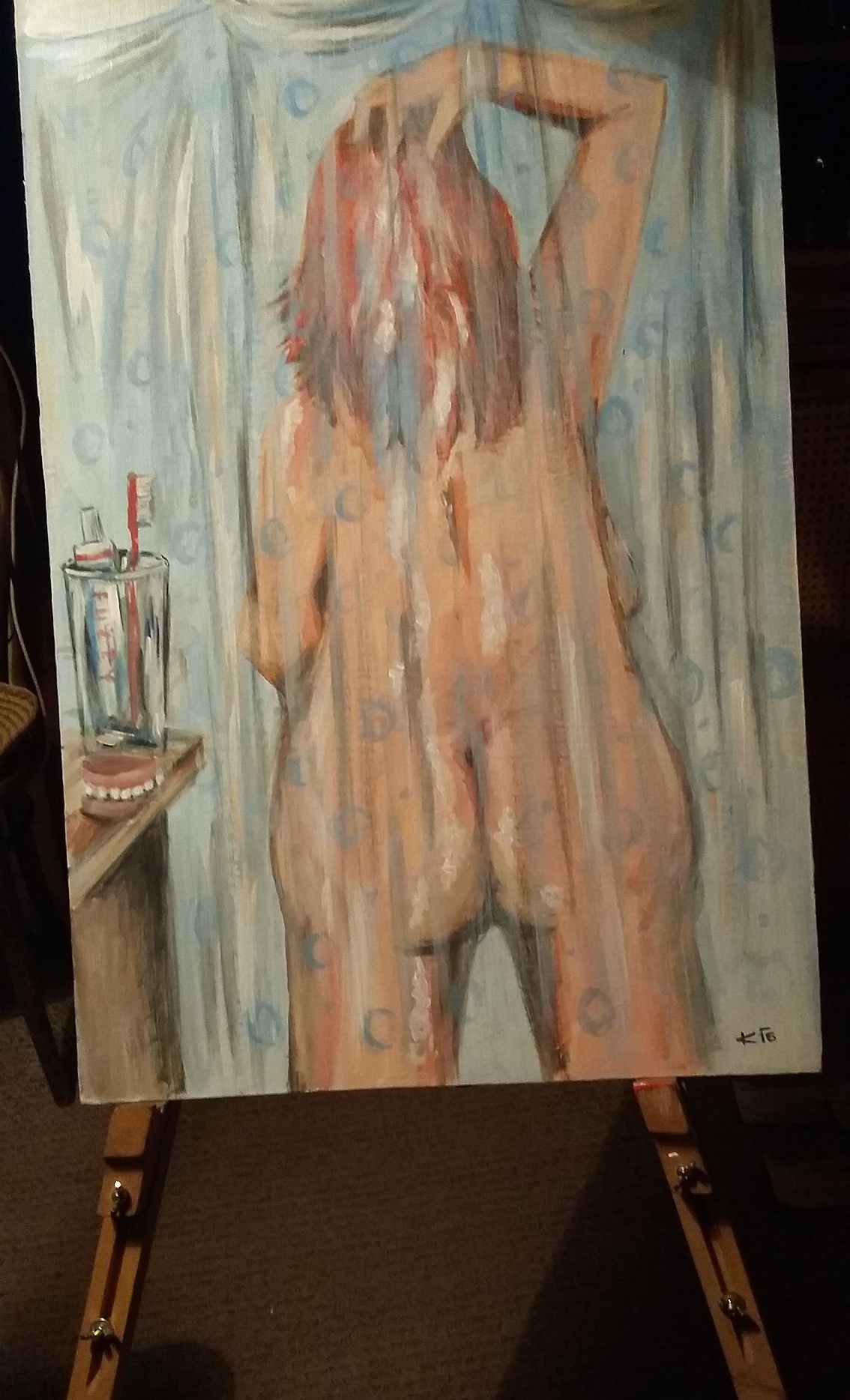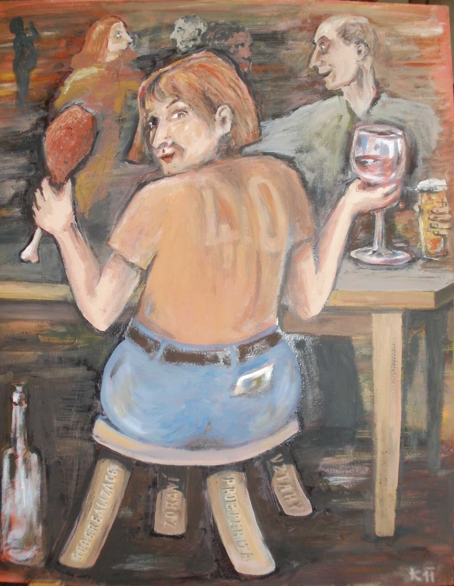 Obraz k narozeninám Dany B. je už jinak malebně pojatý, byl jsem hlavně pochválen za láhev v levém rohu dole. |
